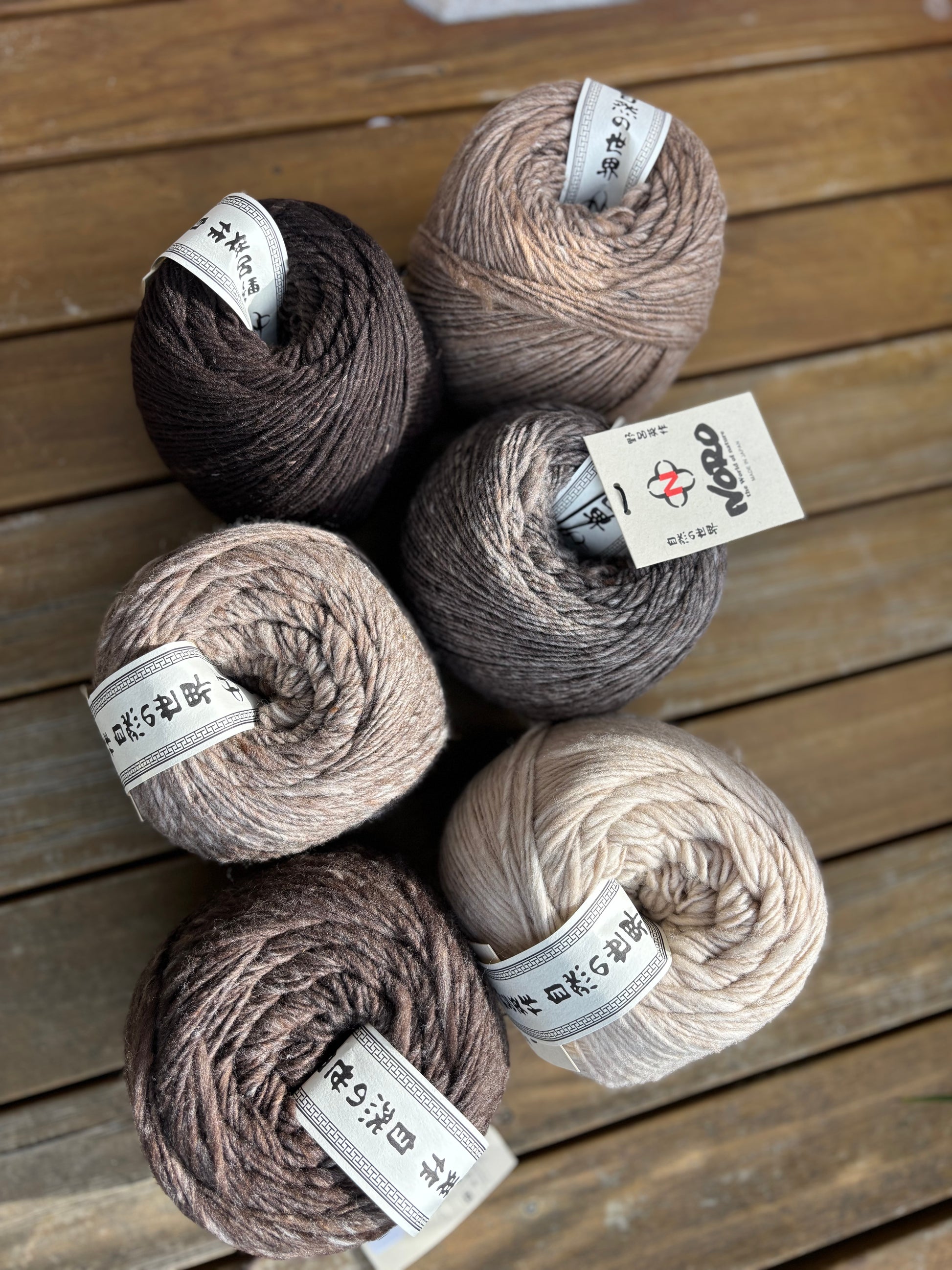 HAUNUI is a fusion of New Zealand Halfbred and Fine Romney stock, line-bred for generations to ensure the very highest quality. The sheep are never mulesed. From New Zealand, the fleece is exported to NORO, in Japan, where it is lovingly carded and spun. With great respect for the wool’s natural qualities and as per Noro’s exacting standards, fleece is never over processed.