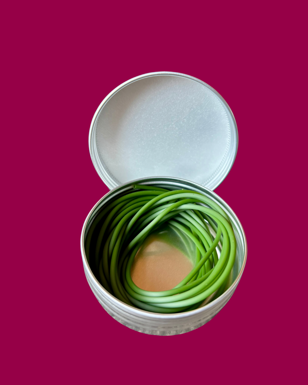 Each set includes three lengths of cord - two 30 inches long and one at 60 inches long and comes in an aluminium tin.