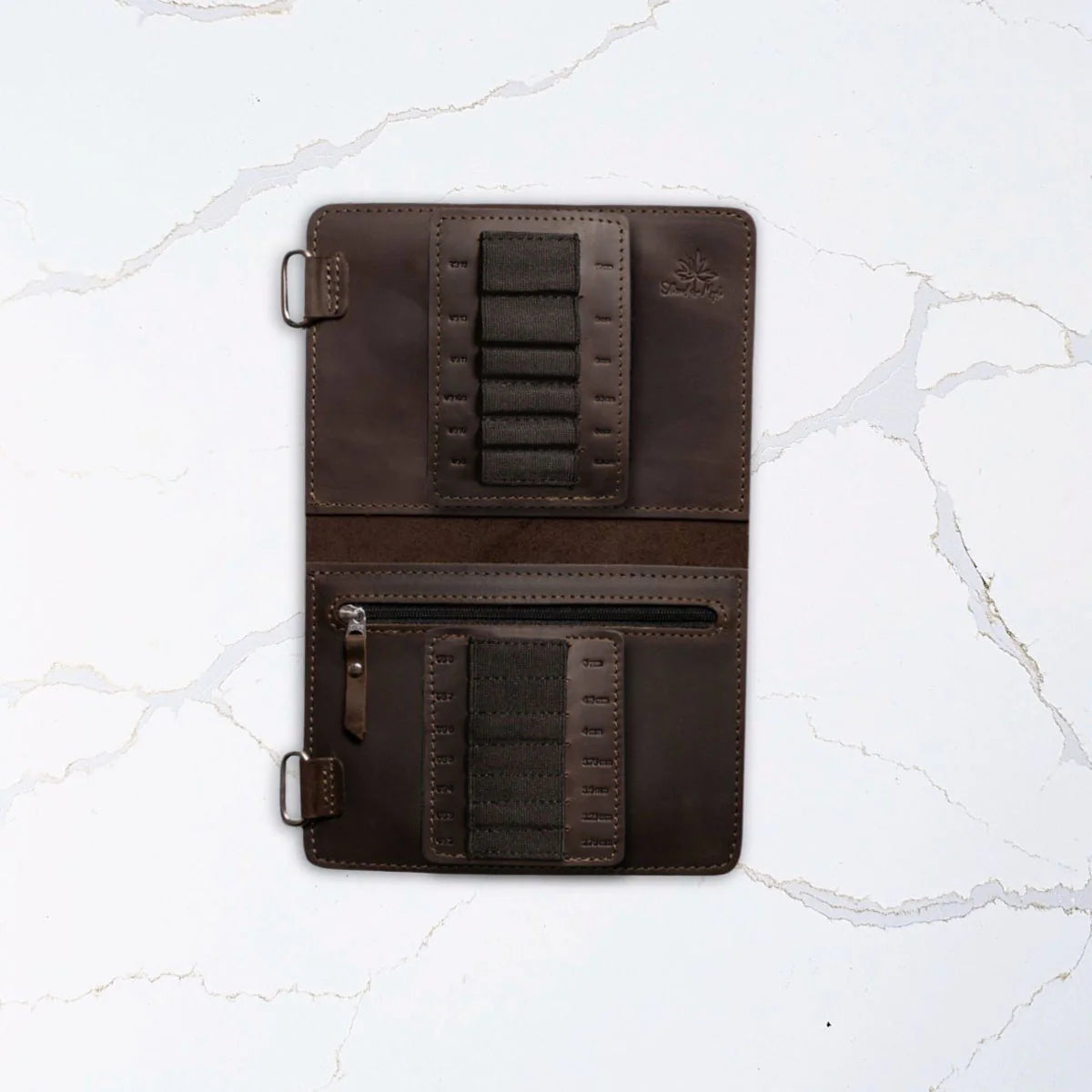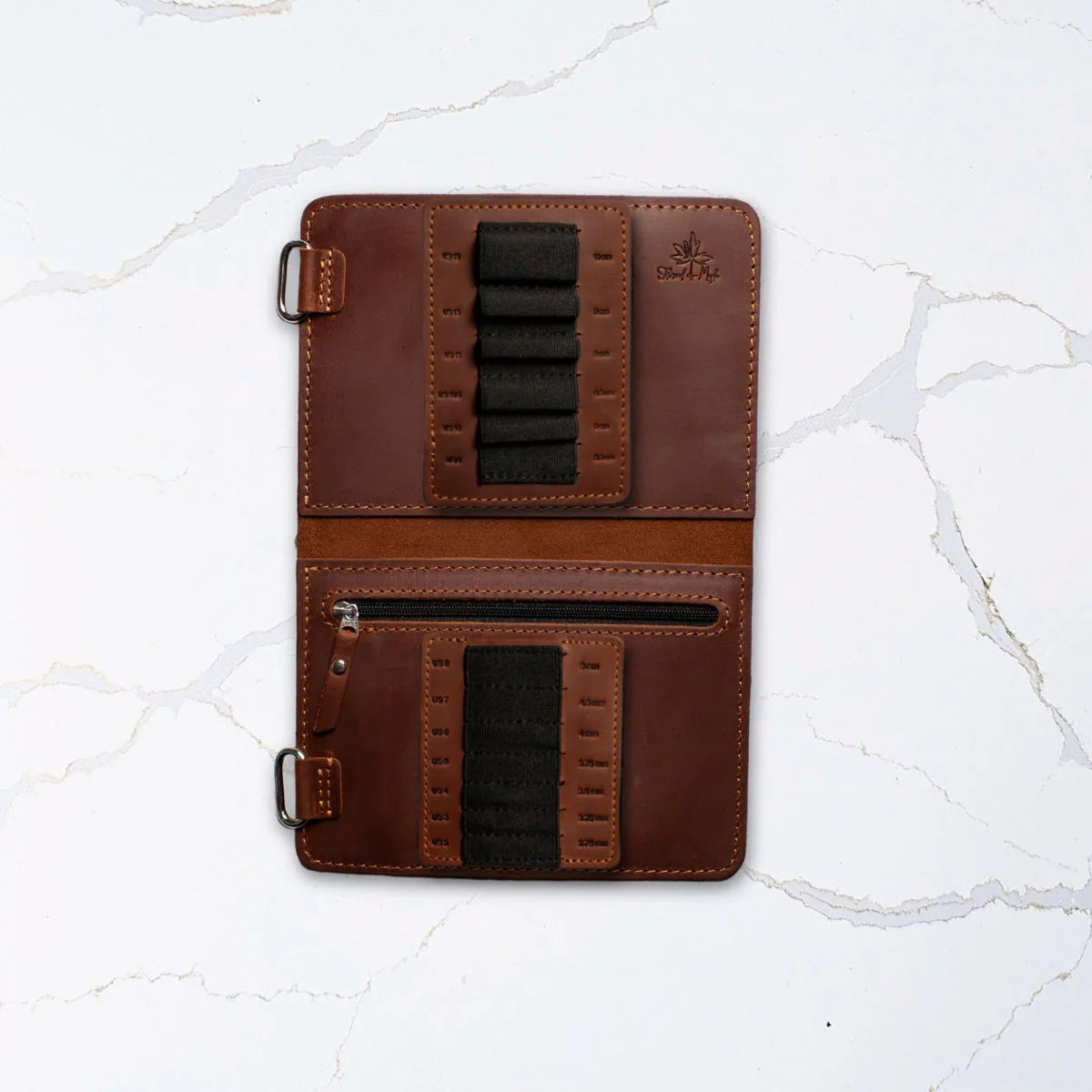 Each case has an ample pocket to store your cords, stoppers, connectors and keys. They feature Velcro tab needle bands designed specifically for your Chiaogoo™ interchangeable set. Each slot is meticulously crafted to snugly fit an IC needles pair and is labelled with both US and EU sizes, so you can quickly find the right needles for your project. The Velcro tabs can be swapped and replaced as your collection evolves, so the same case will last a lifetime.