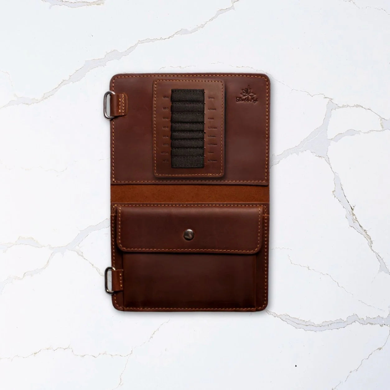 Thread & Maple created these interchangeable cases specifically for Chiaogoo™ needle sets. Although most Chiaogoo™ sets come with their own cases, they don't offer an integrated needle storage solution. These cases are both versatile and portable, folding in half with rotating snaps to a more compact size than the standard Chiaogoo™ case. They also lay flat with the closure snaps neatly tucked, to be inserted as a page into the Needle Binder, to keep your Chiaogoos™ together with the rest of your needle collection. Another neat feature is they can also be folded backwards and made to stand.